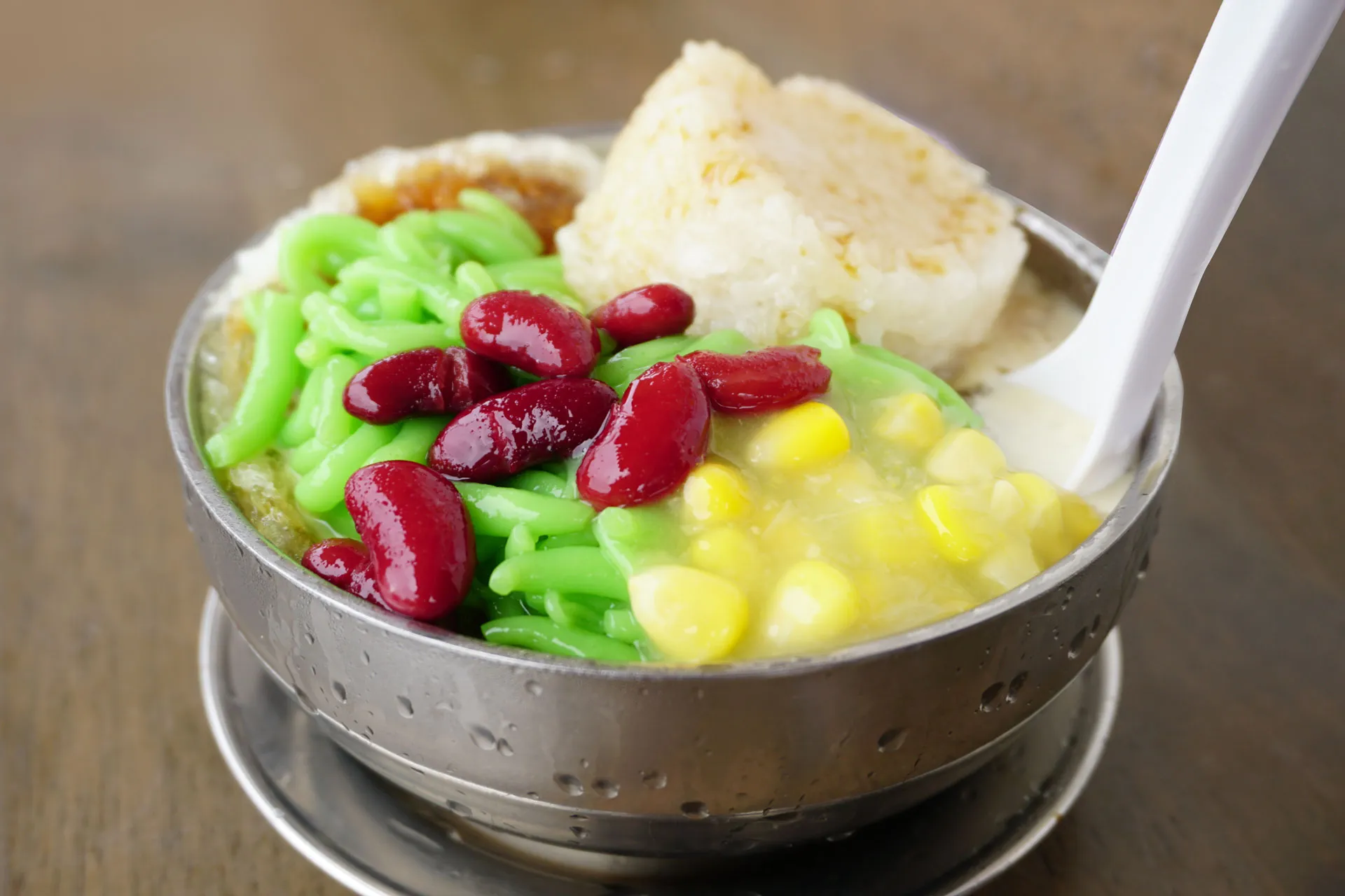 Cendol: Món chè giải nhiệt gồm đá bào, nước cốt dừa, đậu xanh, thạch và siro đường nâu, rất phổ biến trong mùa hè.