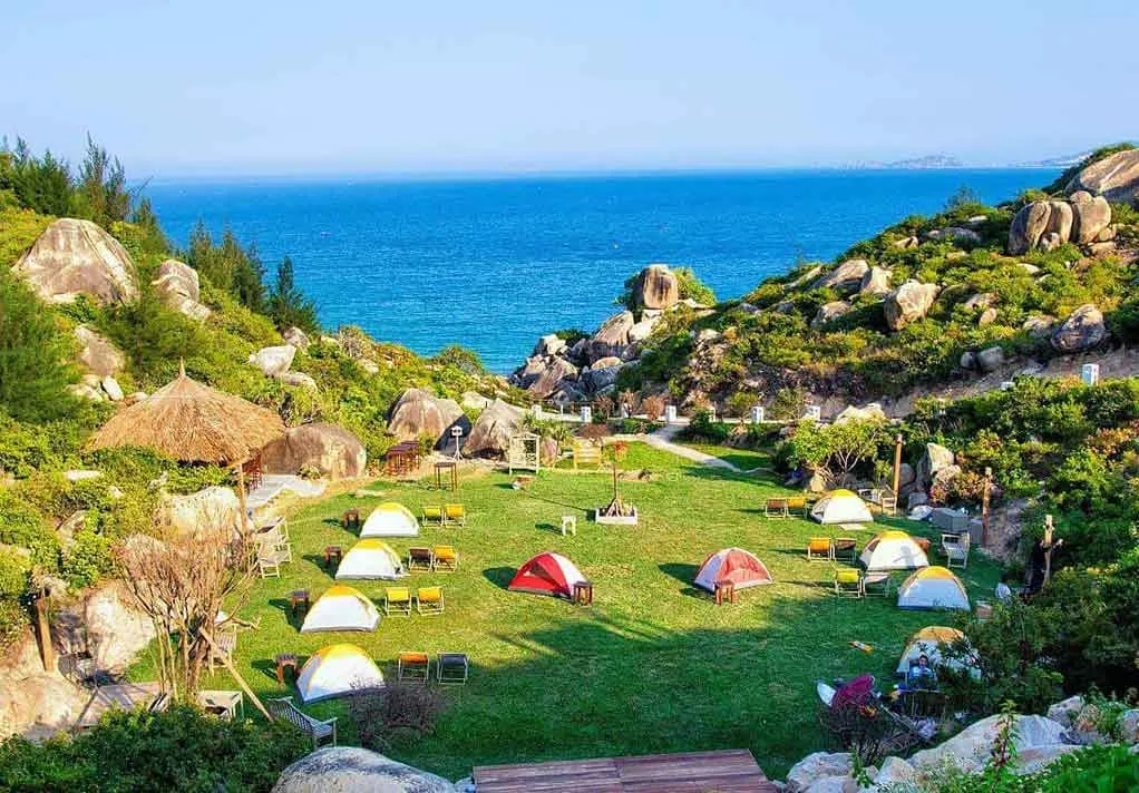Là một điểm đến thu hút đông đảo giới trẻ và cũng là điểm đến được check-in nhiều nhất trong dịp hè này tại tỉnh Bình Định và cách trung tâm thành phố biển Quy Nhơn tầm 30km. Du khách khi đến đây không chỉ được vui chơi, giải trí, cắm trại mà còn được tận hưởng không khí trong lành yên bình của thiên nhiên. Điểm thú vị nhất có lẽ là khu cắm trại với những ngôi lều, hàng ghế nhiều màu sắc rực rỡ giữa xung quanh là những tảng đá vôi, bãi cỏ xanh thẳm, ánh nắng vàng rực rỡ hướng về phía biển sẽ khiến du khách chỉ muốn dừng chân tại nơi đây lâu nhất có thể.